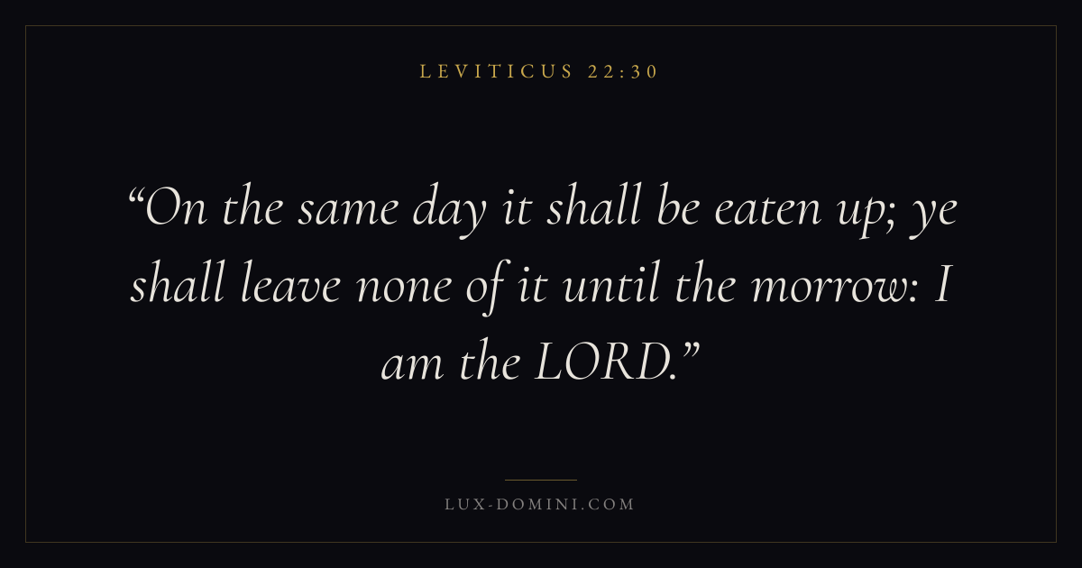 On the same day it shall be eaten up; ye shall leave none of it until the morrow: I am the LORD.