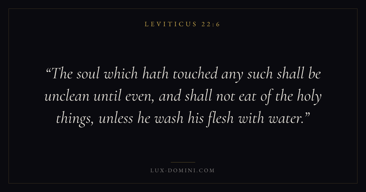 The soul which hath touched any such shall be unclean until even, and shall not eat of the holy things, unless he wash his flesh with water.