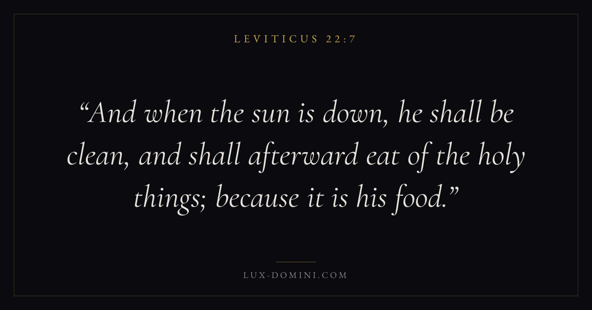 And when the sun is down, he shall be clean, and shall afterward eat of the holy things; because it is his food.