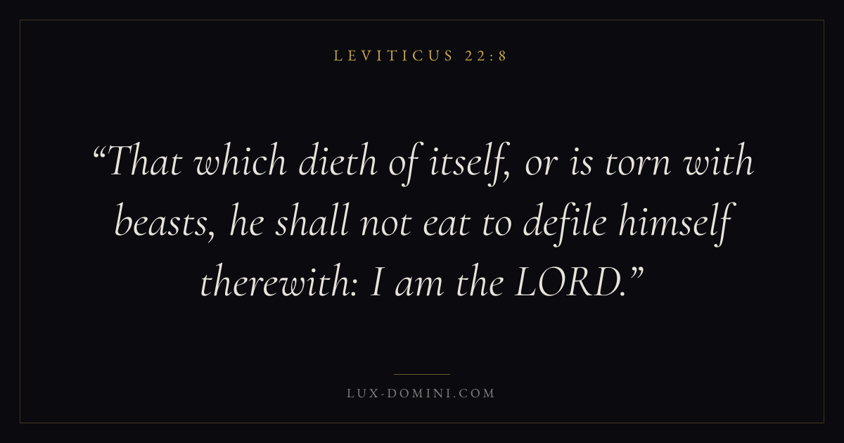 That which dieth of itself, or is torn with beasts, he shall not eat to defile himself therewith: I am the LORD.