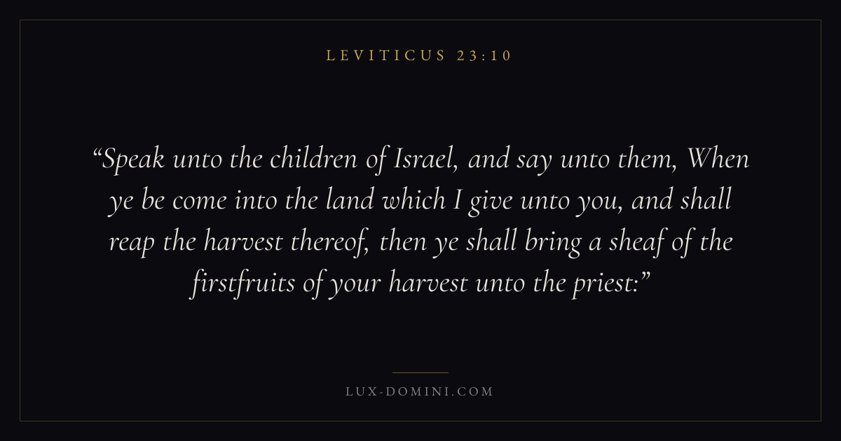 Speak unto the children of Israel, and say unto them, When ye be come into the land which I give unto you, and shall reap the harvest thereof, then ye shall bring a sheaf of the firstfruits of your harvest unto the priest: