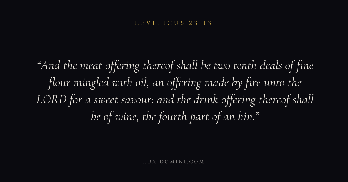 And the meat offering thereof shall be two tenth deals of fine flour mingled with oil, an offering made by fire unto the LORD for a sweet savour: and the drink offering thereof shall be of wine, the fourth part of an hin.