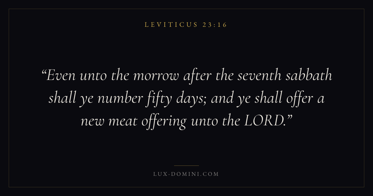 Even unto the morrow after the seventh sabbath shall ye number fifty days; and ye shall offer a new meat offering unto the LORD.