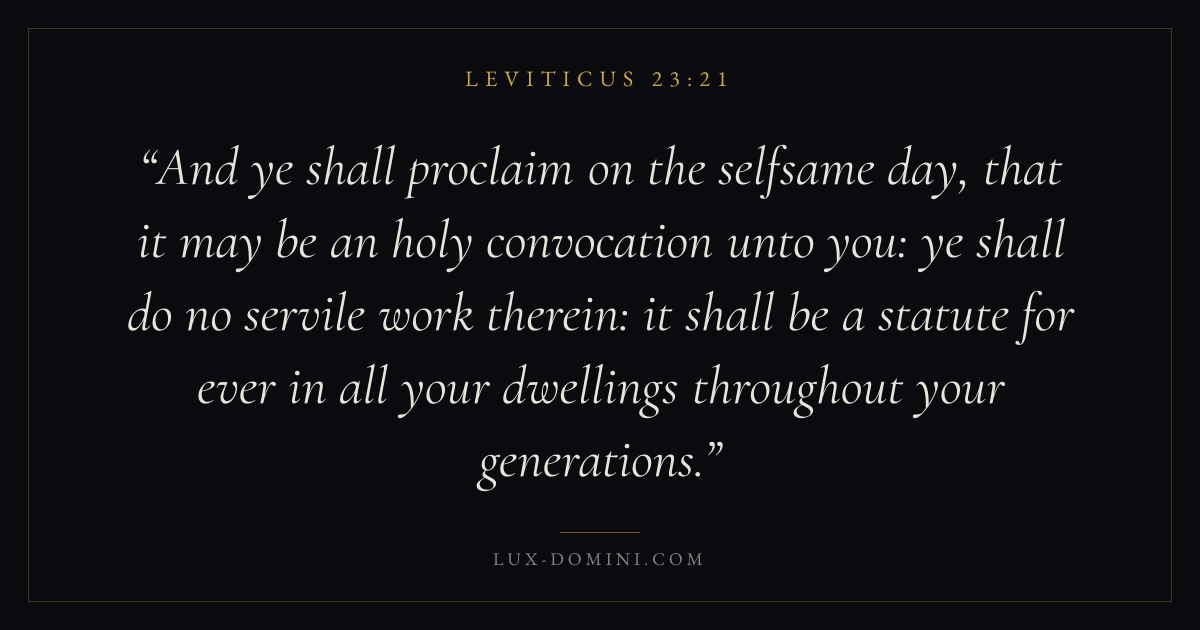 And ye shall proclaim on the selfsame day, that it may be an holy convocation unto you: ye shall do no servile work therein: it shall be a statute for ever in all your dwellings throughout your generations.