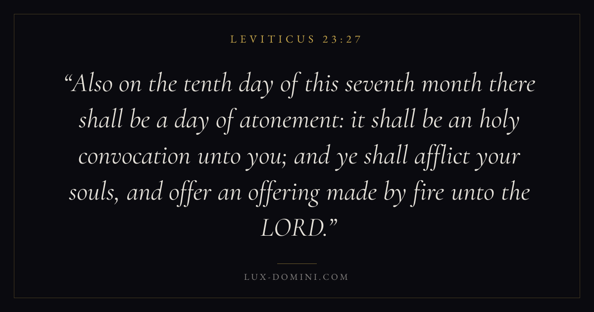 Also on the tenth day of this seventh month there shall be a day of atonement: it shall be an holy convocation unto you; and ye shall afflict your souls, and offer an offering made by fire unto the LORD.