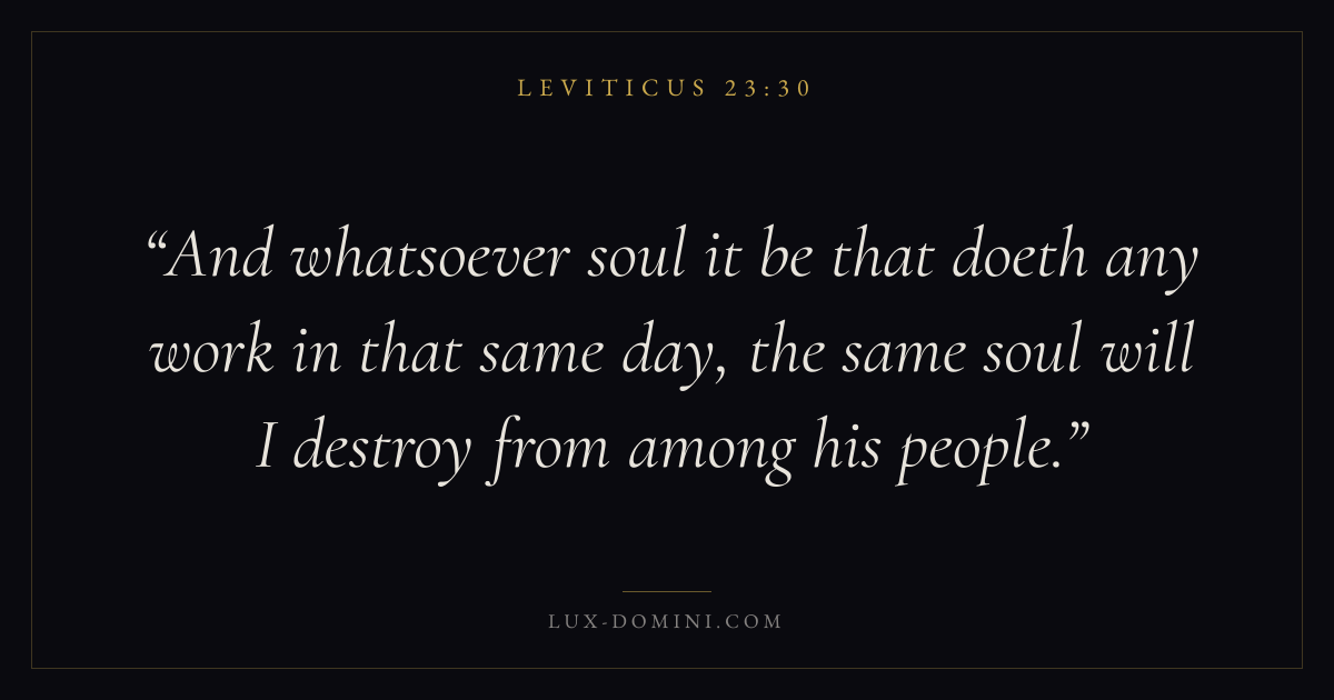 And whatsoever soul it be that doeth any work in that same day, the same soul will I destroy from among his people.