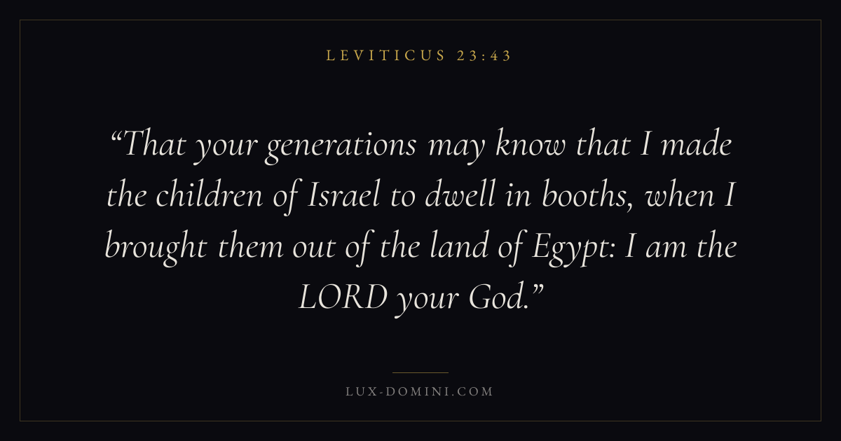 That your generations may know that I made the children of Israel to dwell in booths, when I brought them out of the land of Egypt: I am the LORD your God.