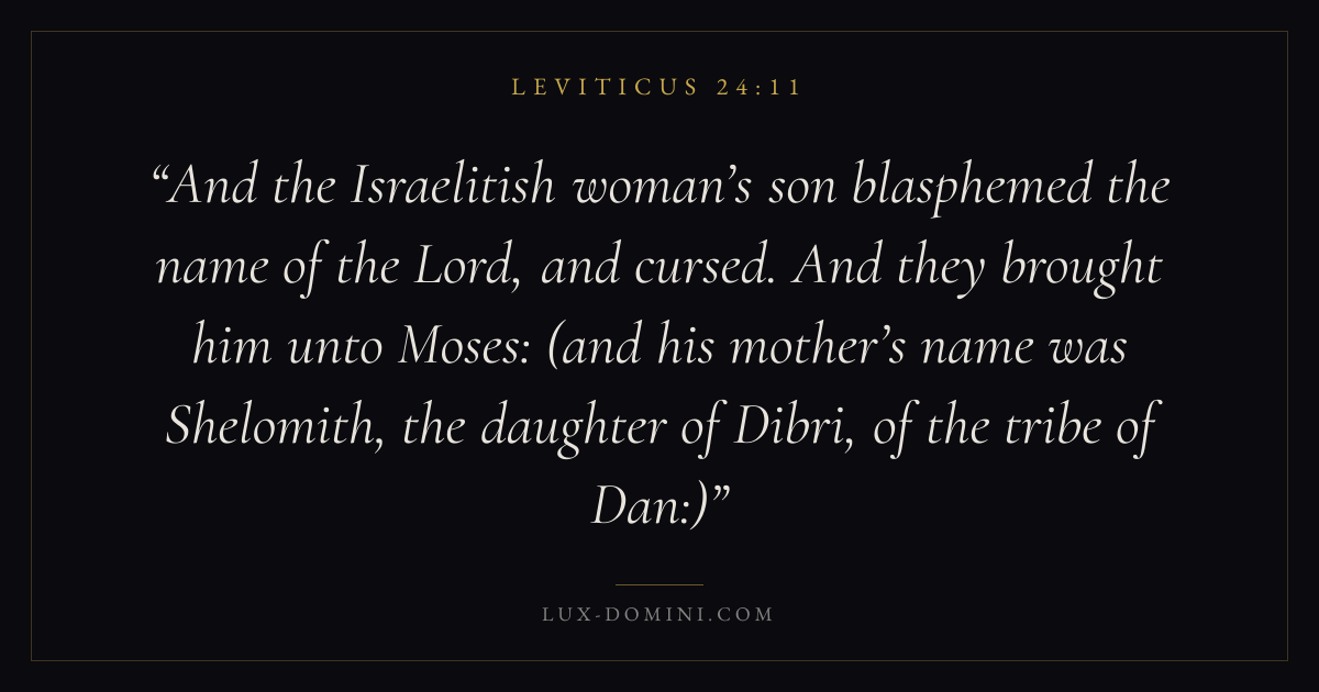 And the Israelitish woman’s son blasphemed the name of the Lord, and cursed. And they brought him unto Moses: (and his mother’s name was Shelomith, the daughter of Dibri, of the tribe of Dan:)