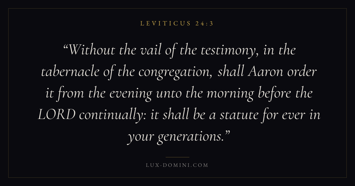 Without the vail of the testimony, in the tabernacle of the congregation, shall Aaron order it from the evening unto the morning before the LORD continually: it shall be a statute for ever in your generations.
