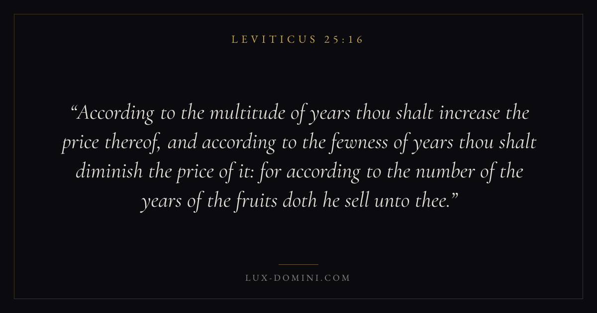 According to the multitude of years thou shalt increase the price thereof, and according to the fewness of years thou shalt diminish the price of it: for according to the number of the years of the fruits doth he sell unto thee.