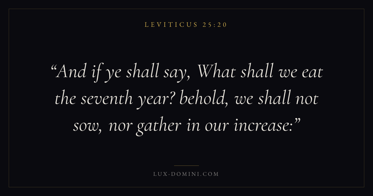 And if ye shall say, What shall we eat the seventh year? behold, we shall not sow, nor gather in our increase: