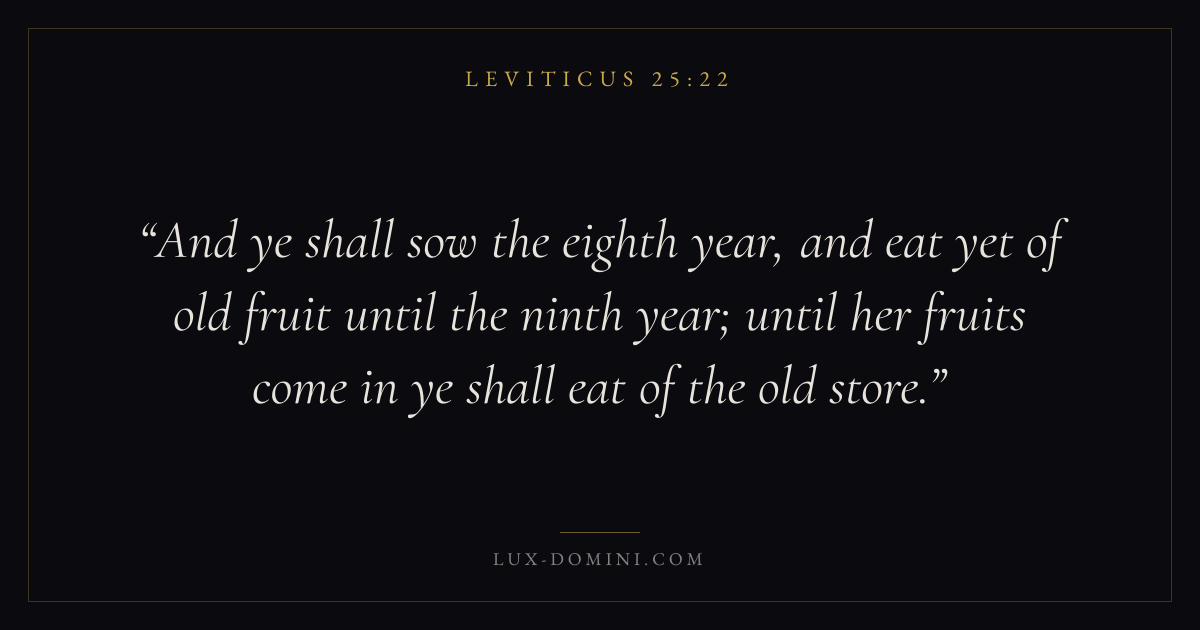 And ye shall sow the eighth year, and eat yet of old fruit until the ninth year; until her fruits come in ye shall eat of the old store.