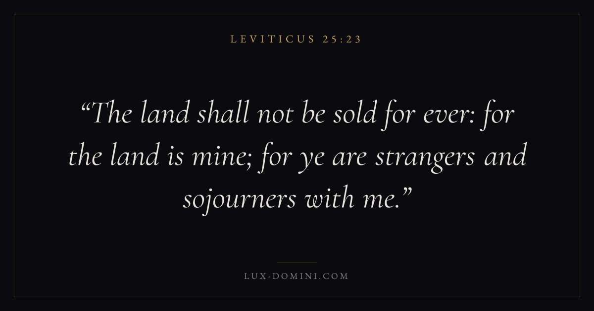 The land shall not be sold for ever: for the land is mine; for ye are strangers and sojourners with me.