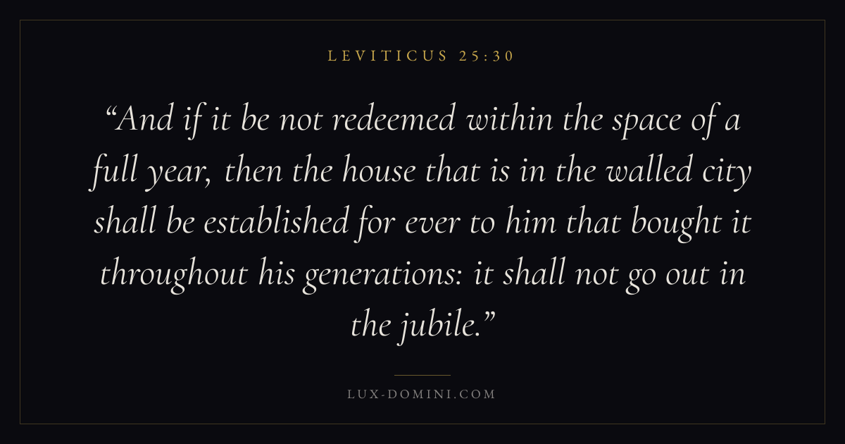 And if it be not redeemed within the space of a full year, then the house that is in the walled city shall be established for ever to him that bought it throughout his generations: it shall not go out in the jubile.
