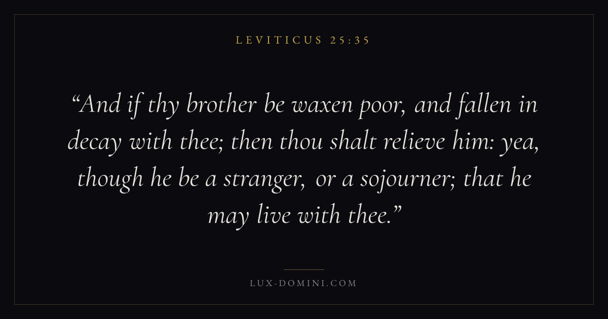 And if thy brother be waxen poor, and fallen in decay with thee; then thou shalt relieve him: yea, though he be a stranger, or a sojourner; that he may live with thee.