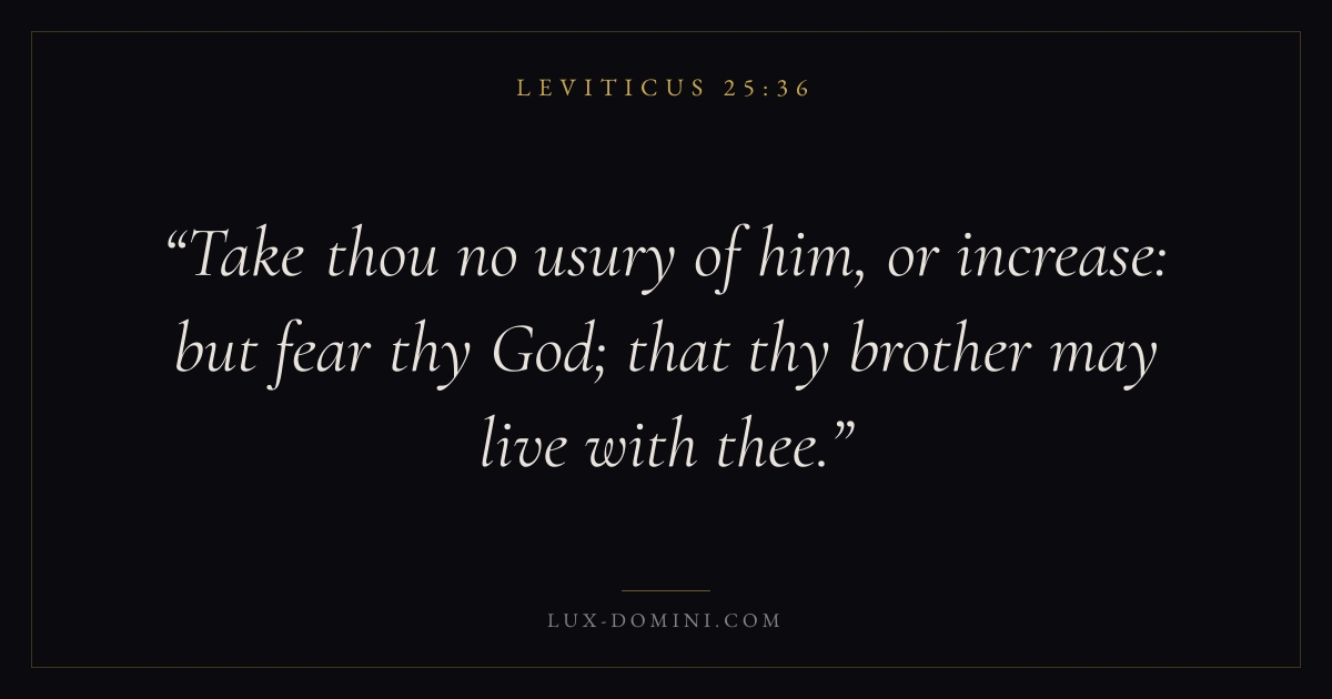 Take thou no usury of him, or increase: but fear thy God; that thy brother may live with thee.