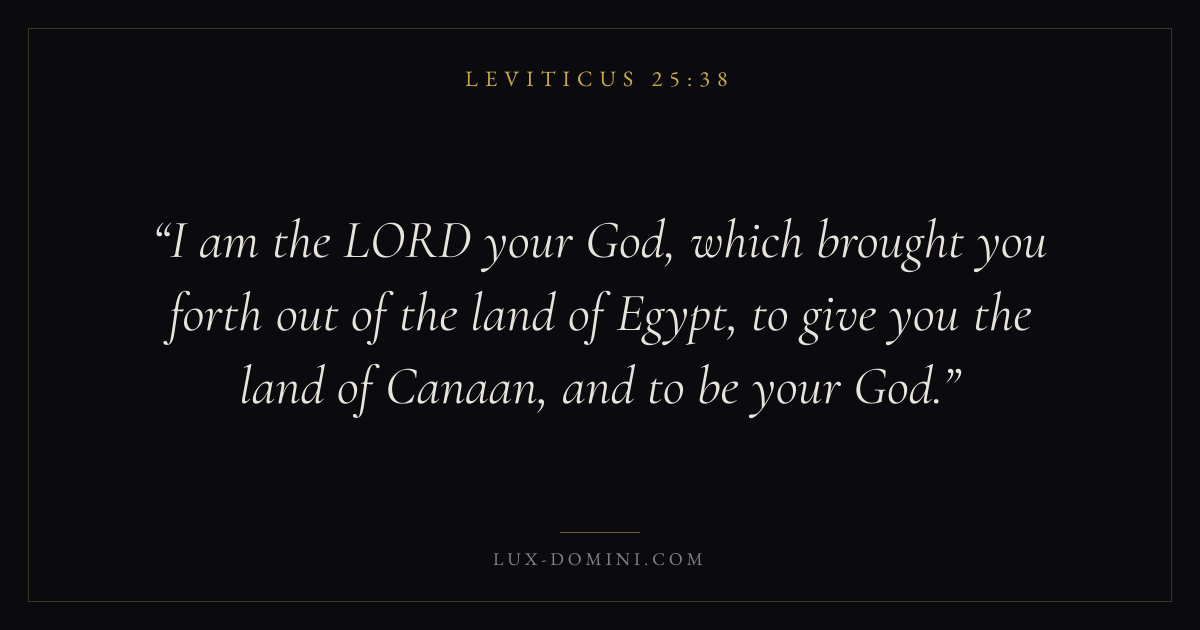 I am the LORD your God, which brought you forth out of the land of Egypt, to give you the land of Canaan, and to be your God.