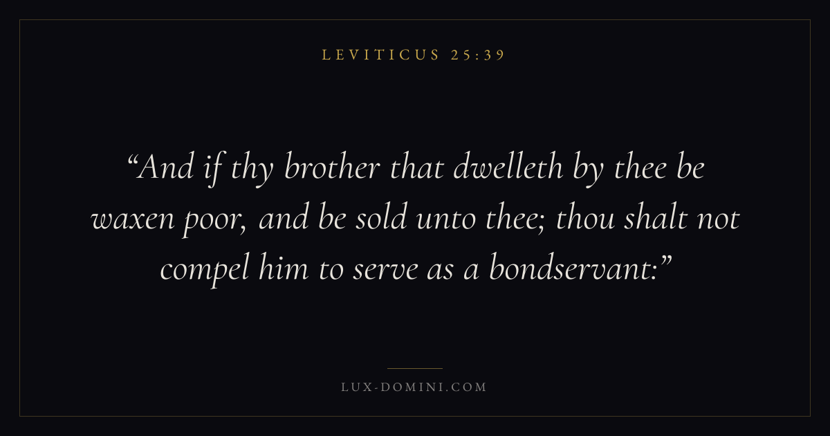 And if thy brother that dwelleth by thee be waxen poor, and be sold unto thee; thou shalt not compel him to serve as a bondservant: