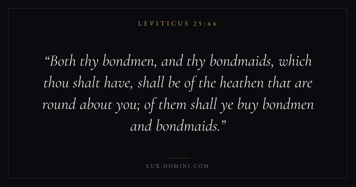 Both thy bondmen, and thy bondmaids, which thou shalt have, shall be of the heathen that are round about you; of them shall ye buy bondmen and bondmaids.