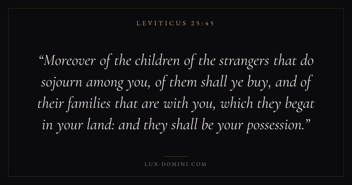 Moreover of the children of the strangers that do sojourn among you, of them shall ye buy, and of their families that are with you, which they begat in your land: and they shall be your possession.