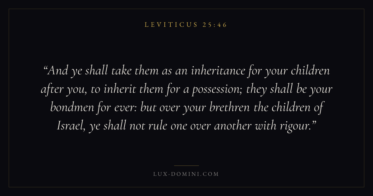 And ye shall take them as an inheritance for your children after you, to inherit them for a possession; they shall be your bondmen for ever: but over your brethren the children of Israel, ye shall not rule one over another with rigour.