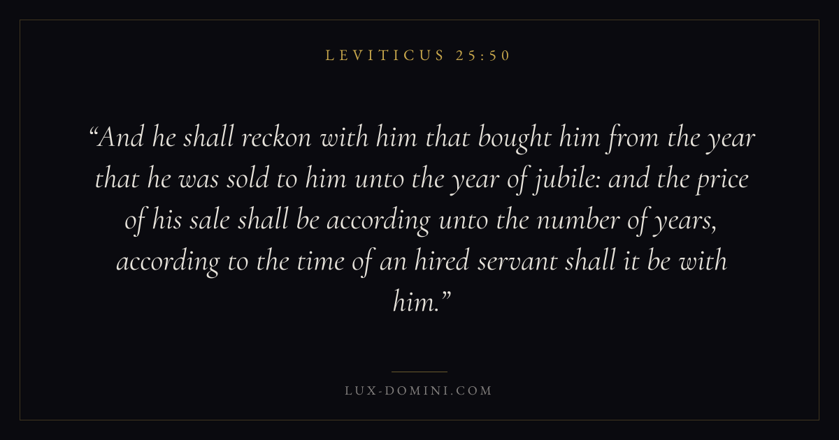 And he shall reckon with him that bought him from the year that he was sold to him unto the year of jubile: and the price of his sale shall be according unto the number of years, according to the time of an hired servant shall it be with him.