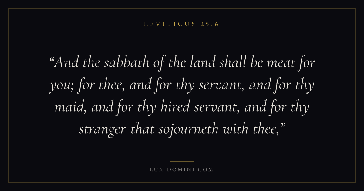 And the sabbath of the land shall be meat for you; for thee, and for thy servant, and for thy maid, and for thy hired servant, and for thy stranger that sojourneth with thee,