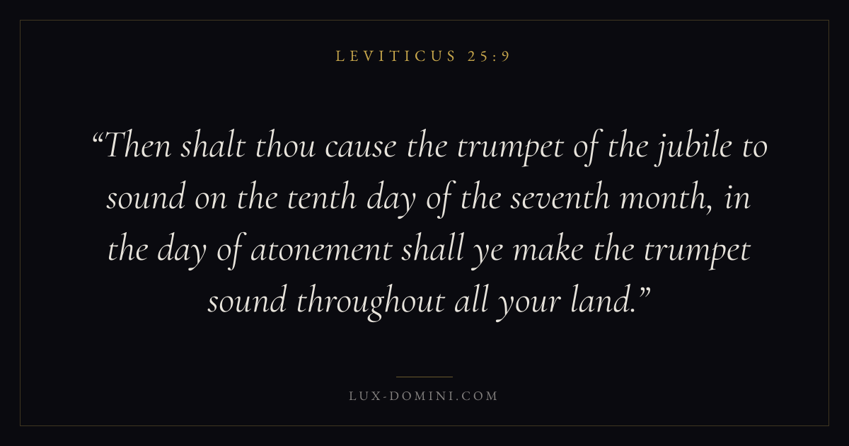 Then shalt thou cause the trumpet of the jubile to sound on the tenth day of the seventh month, in the day of atonement shall ye make the trumpet sound throughout all your land.