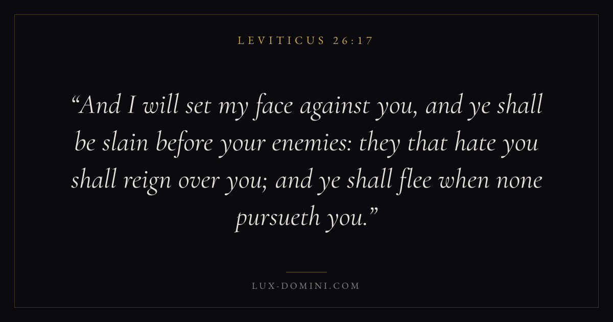 And I will set my face against you, and ye shall be slain before your enemies: they that hate you shall reign over you; and ye shall flee when none pursueth you.