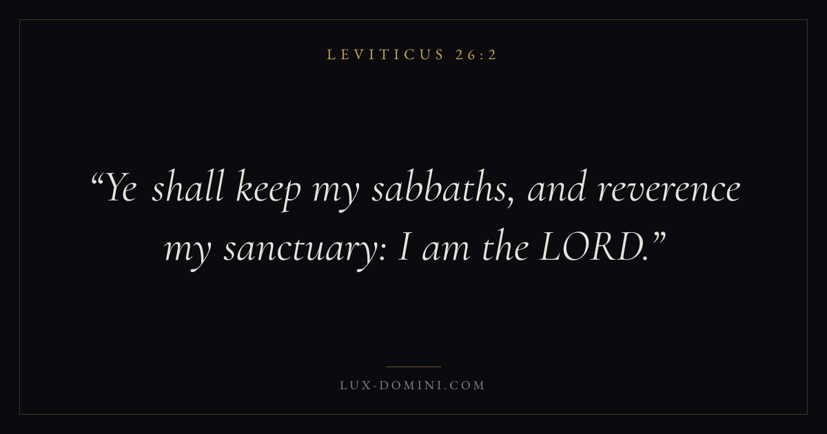Books / Leviticus / Chapter 26 / Verse 2 ← Leviticus 26:1 Leviticus 26:2 Leviticus 26:3 → Ye shall keep my sabbaths, and reverence my sanctuary: I am the LORD. Download verse card Share on Twitter Share on Facebook Pin it ✦ Key themes HolinessAtonementPriesthoodSacrifice ✦ Leviticus Chapter 26 verses V. 1 V. 2 V. 3 V. 4 V. 5 V. 6 V. 7 V. 8 V. 9 V. 10 V. 11 V. 12 V. 13 V. 14 V. 15 V. 16 V. 17 V. 18 V. 19 V. 20 V. 21 V. 22 V. 23 V. 24 V. 25 V. 26 V. 27 V. 28 V. 29 V. 30 V. 31 V. 32 V. 33 V. 34 V. 35 V. 36 V. 37 V. 38 V. 39 V. 40 V. 41 V. 42 V. 43 V. 44 V. 45 V. 46