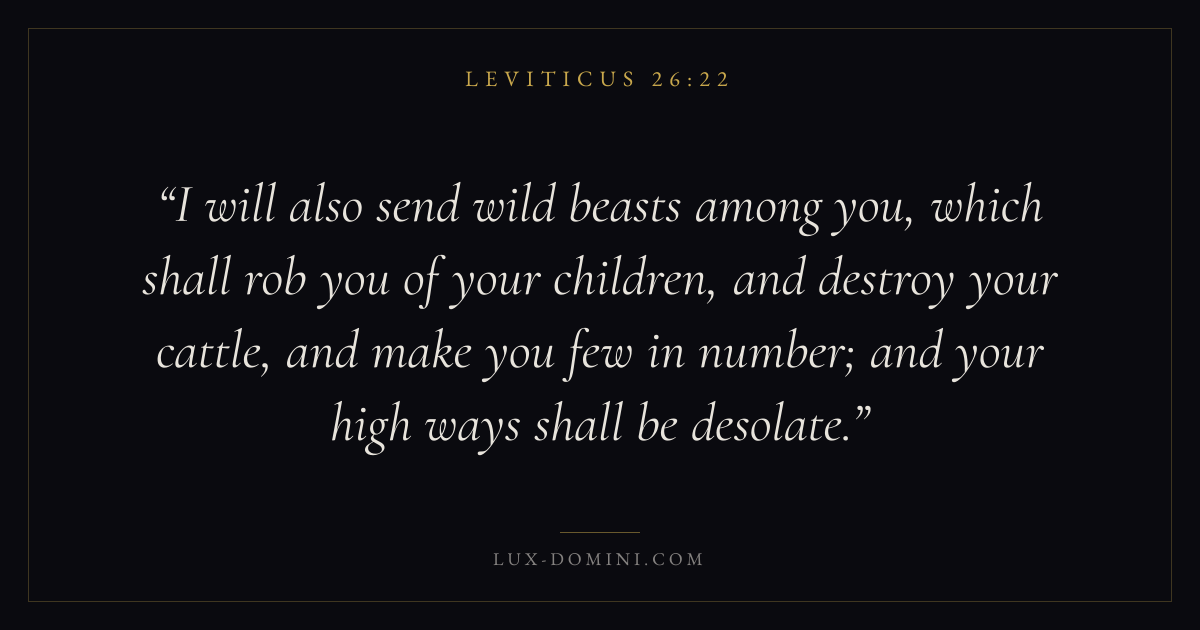 I will also send wild beasts among you, which shall rob you of your children, and destroy your cattle, and make you few in number; and your high ways shall be desolate.