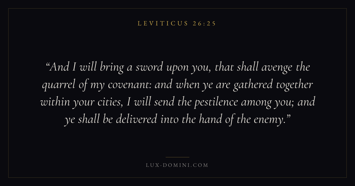 And I will bring a sword upon you, that shall avenge the quarrel of my covenant: and when ye are gathered together within your cities, I will send the pestilence among you; and ye shall be delivered into the hand of the enemy.