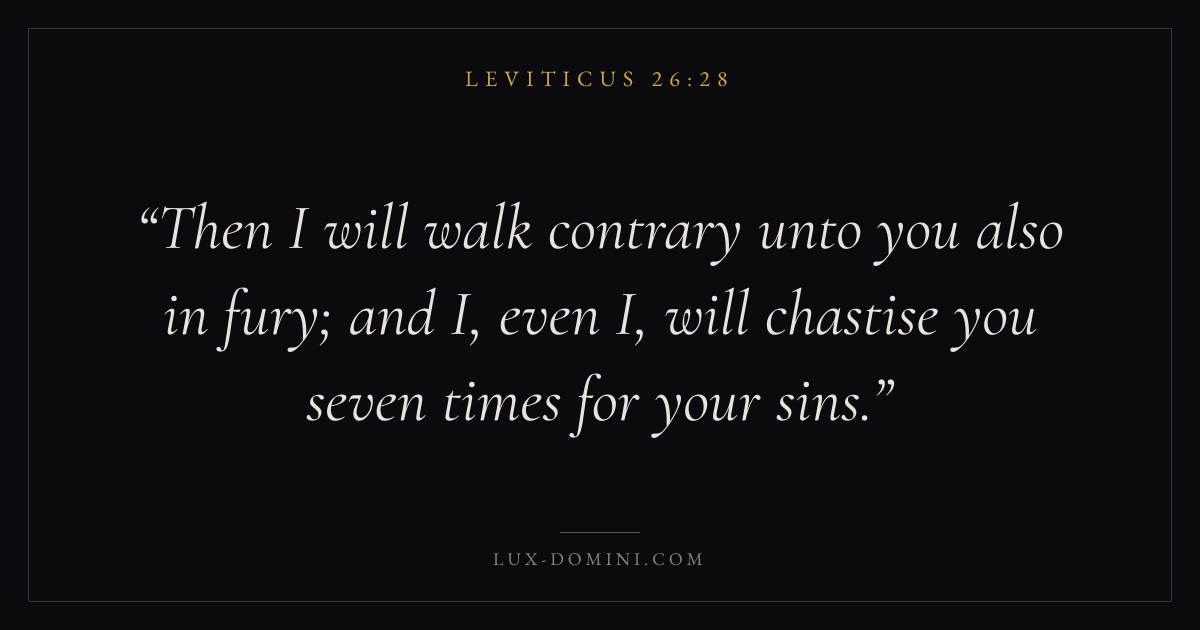 Then I will walk contrary unto you also in fury; and I, even I, will chastise you seven times for your sins.