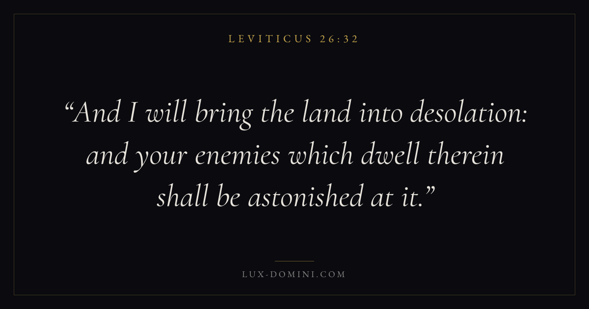 And I will bring the land into desolation: and your enemies which dwell therein shall be astonished at it.