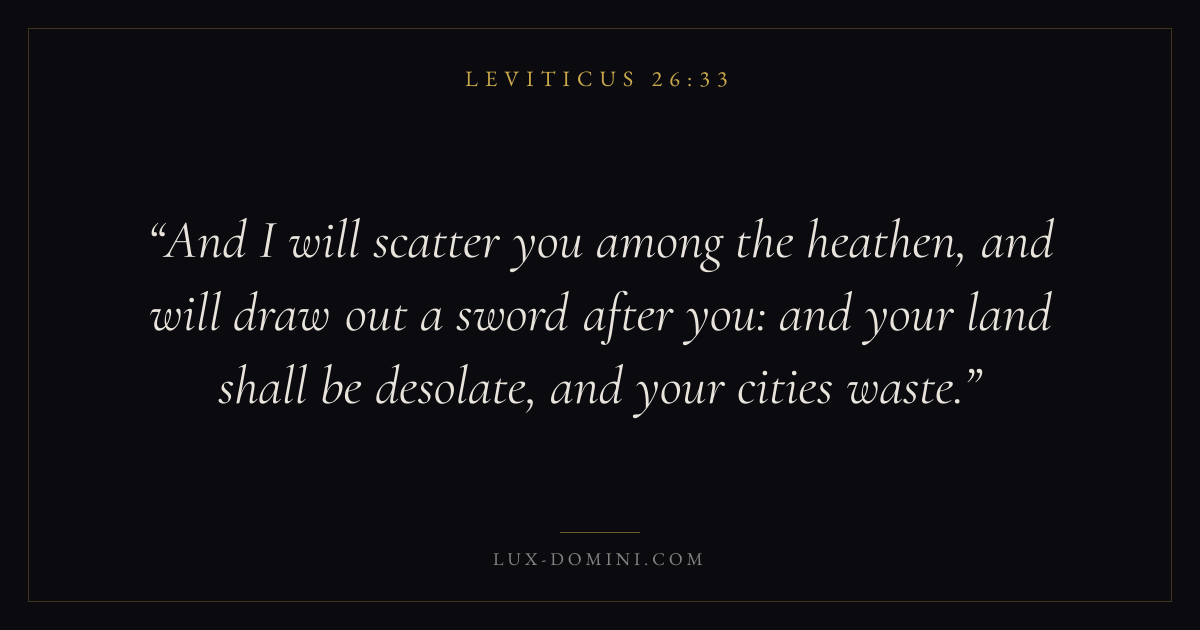 And I will scatter you among the heathen, and will draw out a sword after you: and your land shall be desolate, and your cities waste.