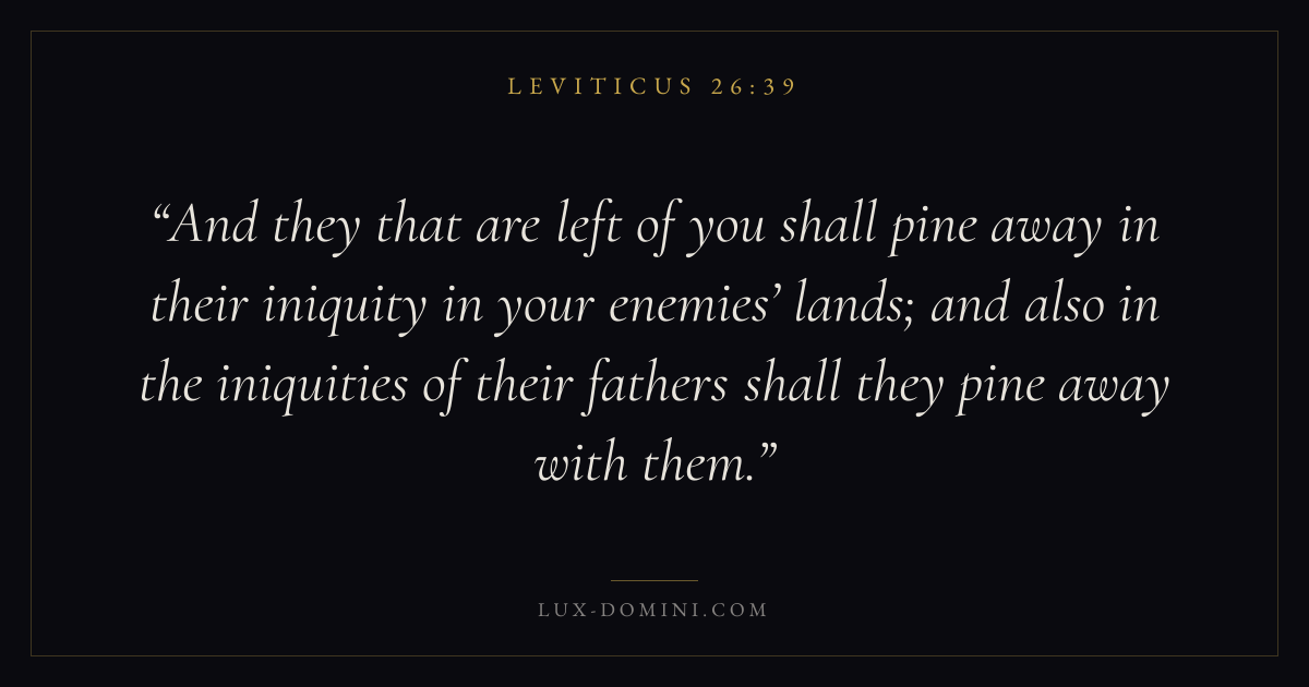 And they that are left of you shall pine away in their iniquity in your enemies’ lands; and also in the iniquities of their fathers shall they pine away with them.