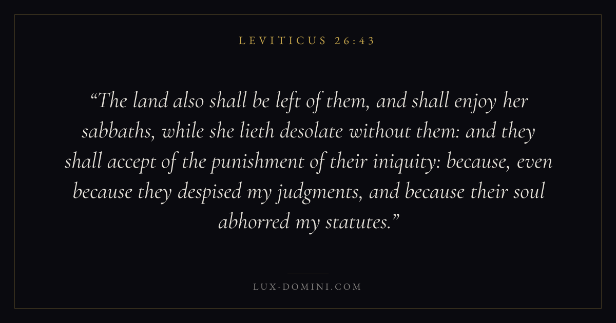 The land also shall be left of them, and shall enjoy her sabbaths, while she lieth desolate without them: and they shall accept of the punishment of their iniquity: because, even because they despised my judgments, and because their soul abhorred my statutes.