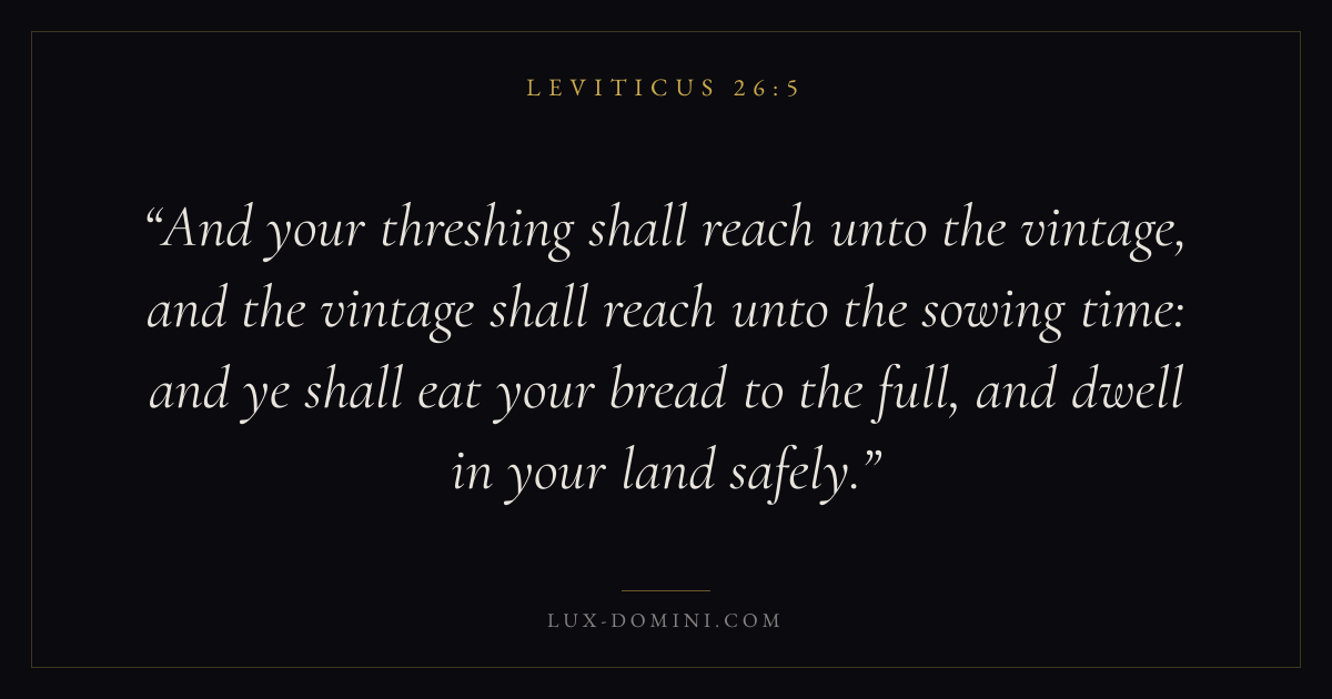 And your threshing shall reach unto the vintage, and the vintage shall reach unto the sowing time: and ye shall eat your bread to the full, and dwell in your land safely.