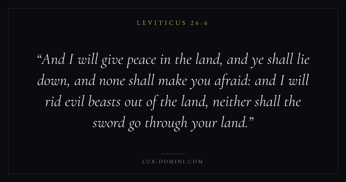 And I will give peace in the land, and ye shall lie down, and none shall make you afraid: and I will rid evil beasts out of the land, neither shall the sword go through your land.