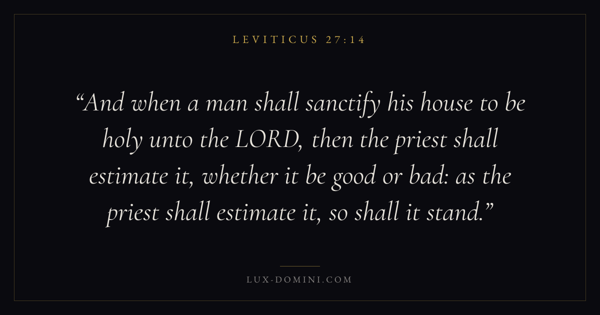And when a man shall sanctify his house to be holy unto the LORD, then the priest shall estimate it, whether it be good or bad: as the priest shall estimate it, so shall it stand.