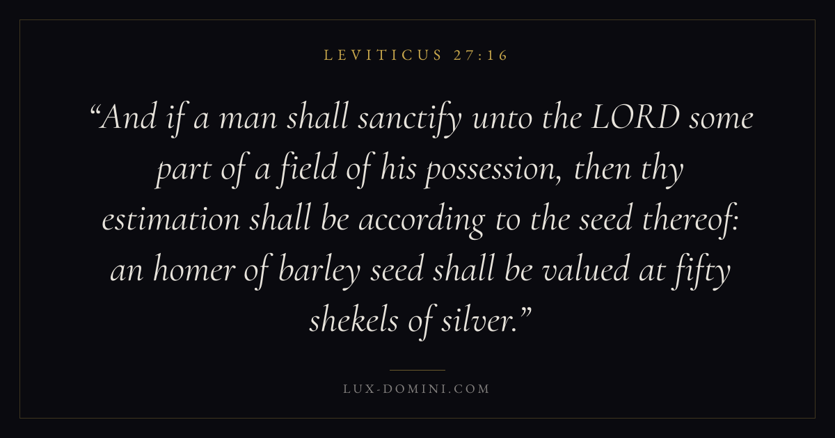 And if a man shall sanctify unto the LORD some part of a field of his possession, then thy estimation shall be according to the seed thereof: an homer of barley seed shall be valued at fifty shekels of silver.