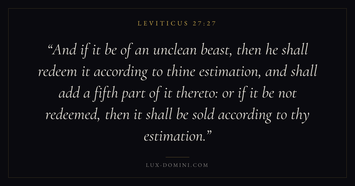And if it be of an unclean beast, then he shall redeem it according to thine estimation, and shall add a fifth part of it thereto: or if it be not redeemed, then it shall be sold according to thy estimation.