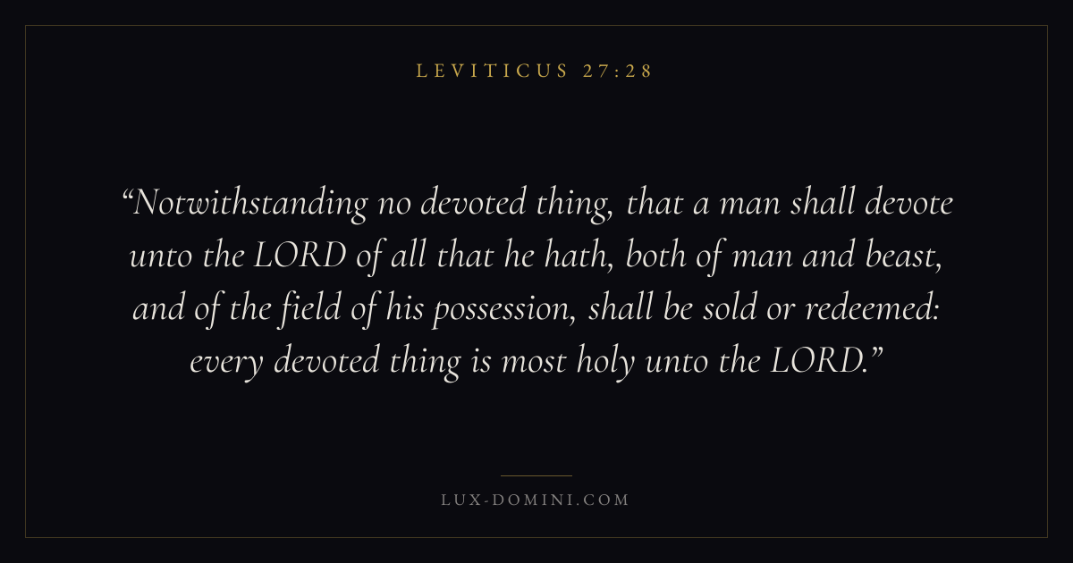Notwithstanding no devoted thing, that a man shall devote unto the LORD of all that he hath, both of man and beast, and of the field of his possession, shall be sold or redeemed: every devoted thing is most holy unto the LORD.