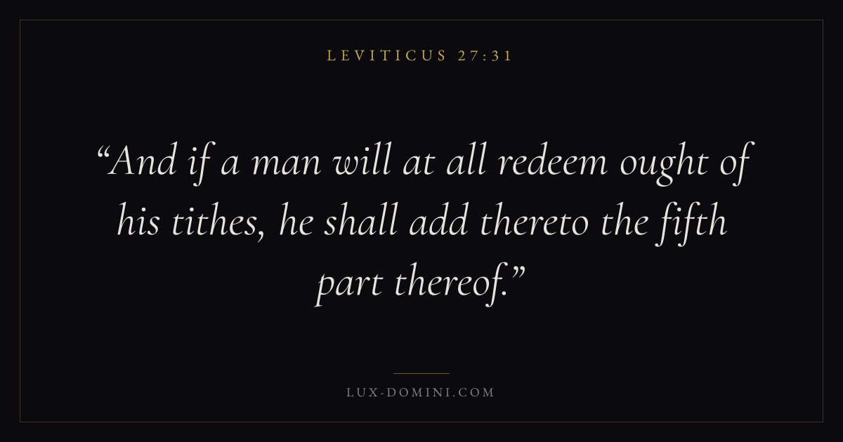 And if a man will at all redeem ought of his tithes, he shall add thereto the fifth part thereof.