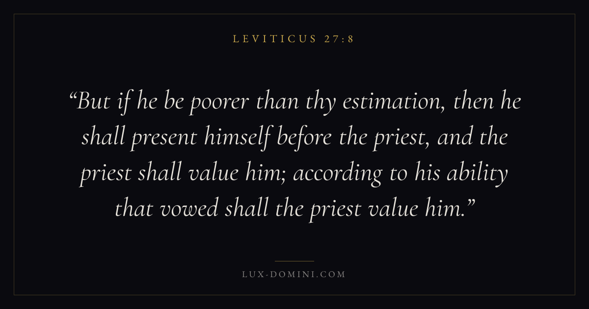 But if he be poorer than thy estimation, then he shall present himself before the priest, and the priest shall value him; according to his ability that vowed shall the priest value him.