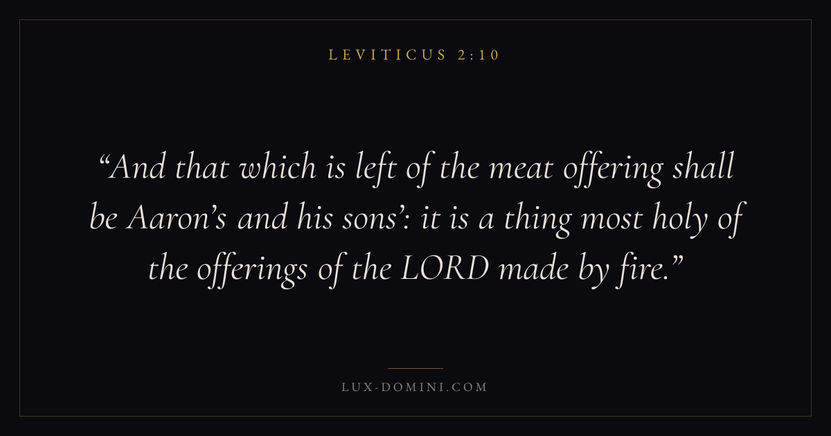 And that which is left of the meat offering shall be Aaron’s and his sons’: it is a thing most holy of the offerings of the LORD made by fire.