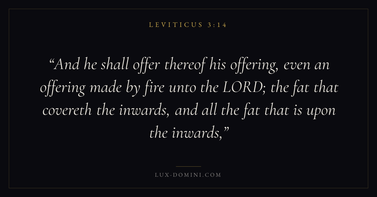 And he shall offer thereof his offering, even an offering made by fire unto the LORD; the fat that covereth the inwards, and all the fat that is upon the inwards,