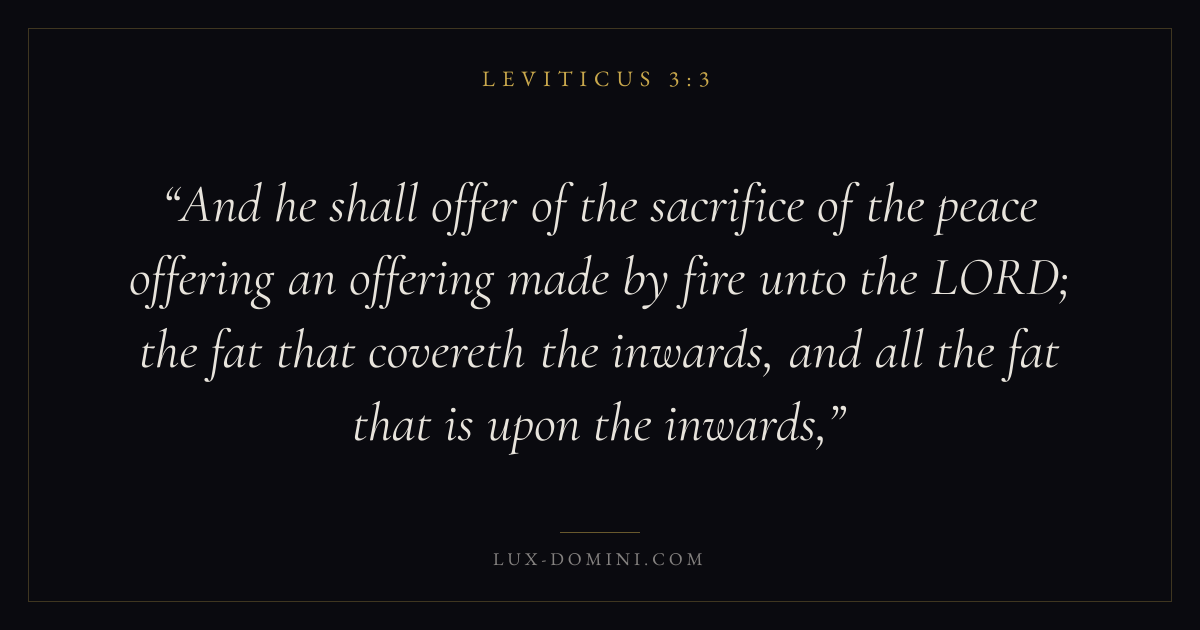 And he shall offer of the sacrifice of the peace offering an offering made by fire unto the LORD; the fat that covereth the inwards, and all the fat that is upon the inwards,