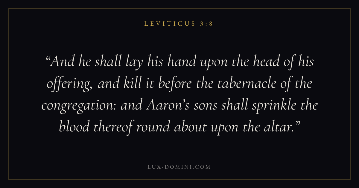 And he shall lay his hand upon the head of his offering, and kill it before the tabernacle of the congregation: and Aaron’s sons shall sprinkle the blood thereof round about upon the altar.