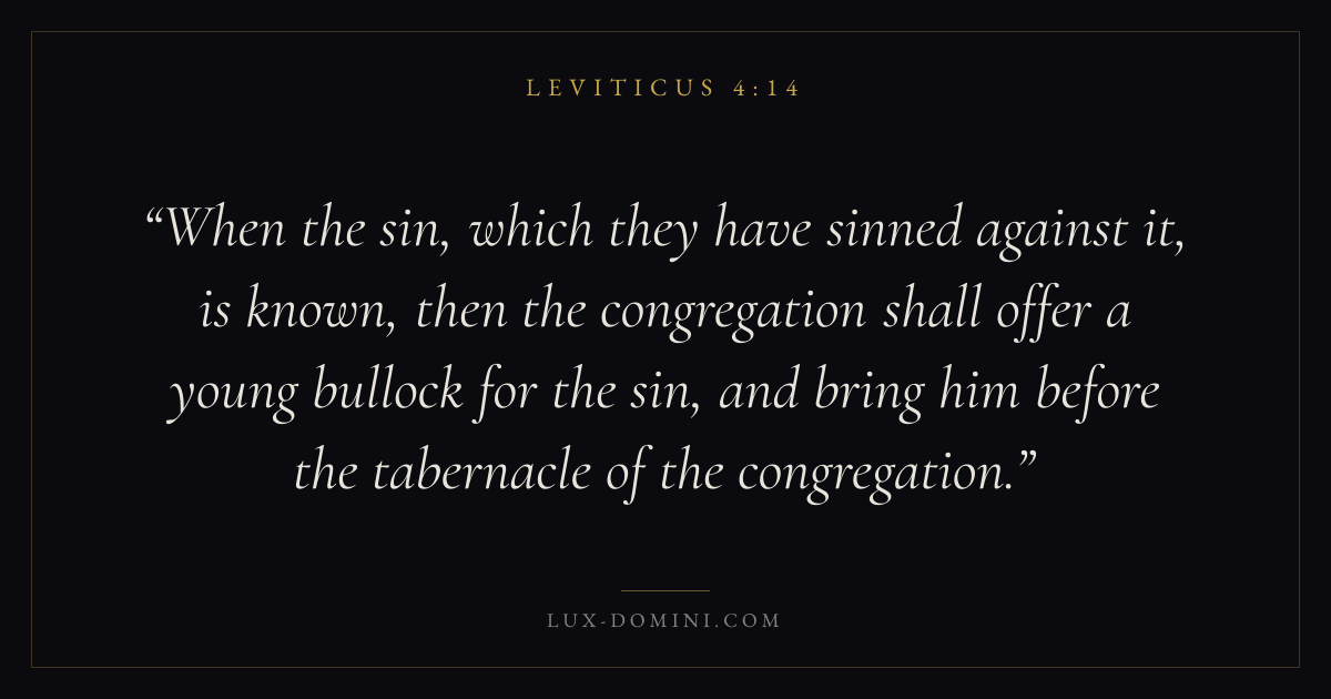 When the sin, which they have sinned against it, is known, then the congregation shall offer a young bullock for the sin, and bring him before the tabernacle of the congregation.